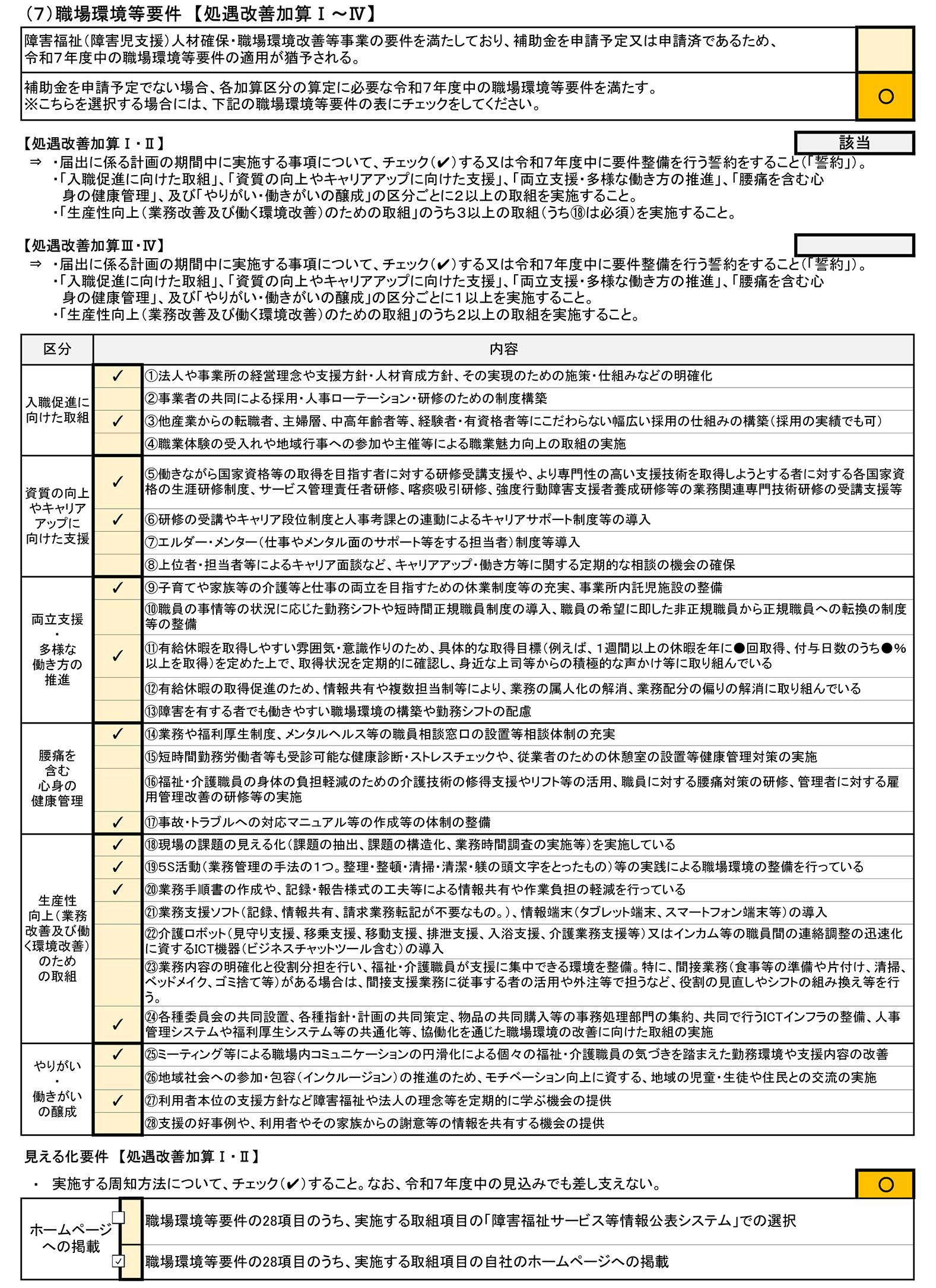 福祉・介護職員処遇改善等加算に係る「見える化・職場環境等要件」について
